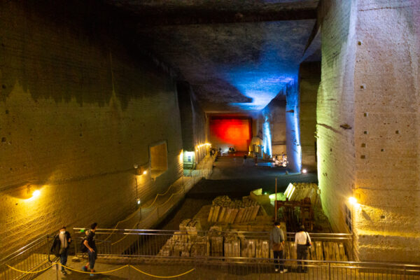 Knapp einen Kilometer entfernt befindet sich dann das Ōya History Museum. Und hier bietet sich die besondere Gelegenheit, die Steinbrüche zu besichtigen. Dort wurde der besondere Stein, etwa zur Verkleidung von Häusern, unterirdisch abgebaut.