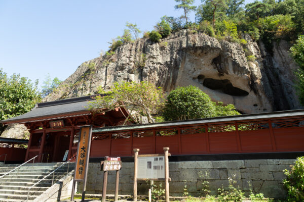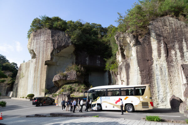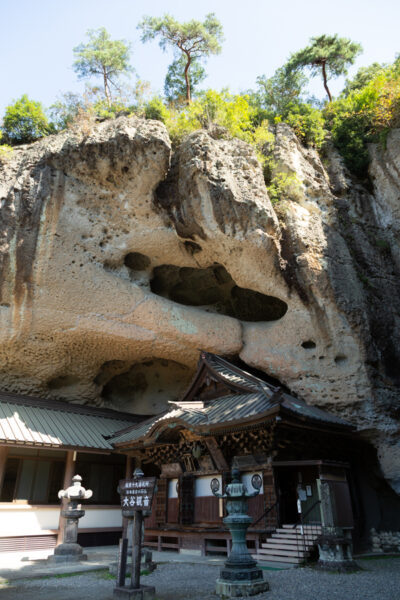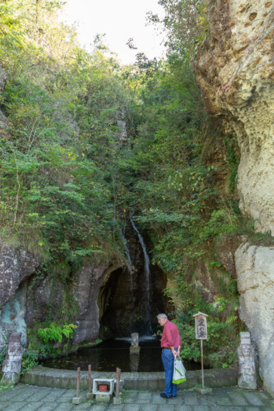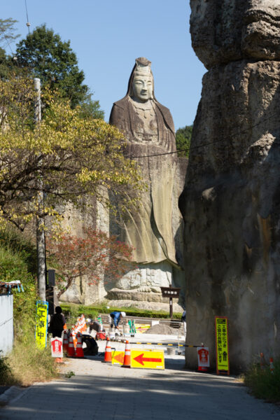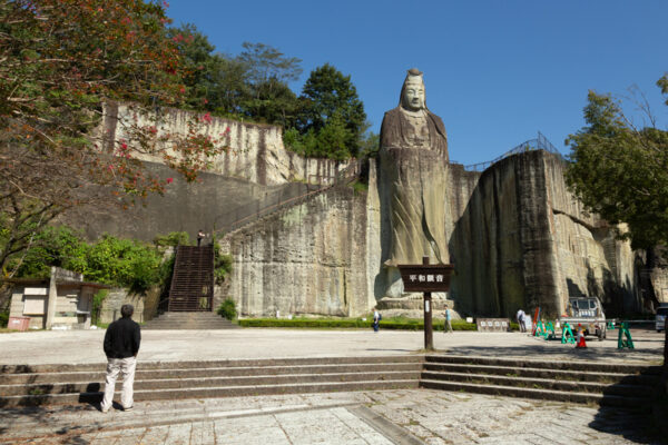 In einem ehemaligen Steinbruch dahinter befinden sich die beeindruckend grosse «Heiwa Kannon» sowie andere Steinformen. Vor allem sehenswert und von höchst kulturhistorischem Rang ist dann die Kannon-Staute im Tempel auf der anderen Seite des Parks. Die in den Fels gehauene Statue einer tausendarmigen Kannon stammt aus der Heinan-Zeit und ist somit über 1000 Jahre alt. Sie soll die älteste Steinskulptur Japans sein, und der uns bereits sehr bekannte buddhistische Mönch Kōbō Daishi soll den Tempel begründet haben.
