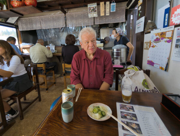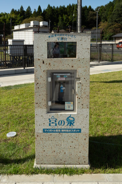 Es war schnell Mittag, und das kleine Soba-Restaurant wirkte sympathisch, zumal es von zwei rüstigen Omas geführt wurde (mit dem Taco-Restaurant gegenüber konnten wir so gar nichts anfangen). Satt und zufrieden kehrten wir nach der Pause wieder zu den Velos zurück. Noch eine interessante Entdeckung machten wir dort: An einem kleinen Automaten durfte man gratis Quellwasser zapfen. An sich nicht ganz ungewöhnlich. Bis vielleicht auf die «Öffnungszeiten» der Anlage, ähnlich wie bei den Geldautomaten. Japan hält wenig vom 24h-Betrieb.😉