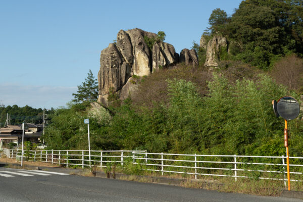 Der «Tengu no nageishi» (Tengus geworfener Stein) prankte unübersehbar oberhalb des Weges, er wird zur Sicherheit von stabilen Stahlnetzten in Form gehalten.
