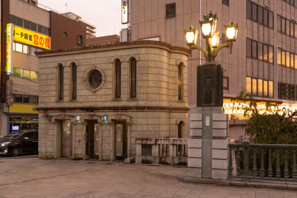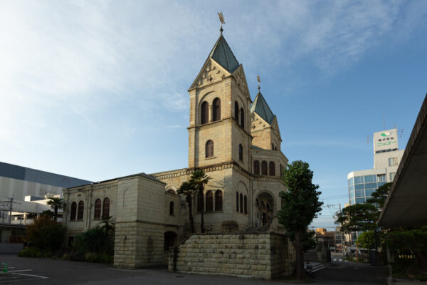 Zurück im Zentrum stoppten wir noch am grossen Bahnhof und Kaufhaus der Tobu-Line. Direkt dahinter lag nämlich eine besondere Sehenswürdigkeit: Die von einem Schweizer Architekten im Jahr 1932 erbaute katholische Matsugamine-Kirche aus Ōya Stein (Name folgt…)