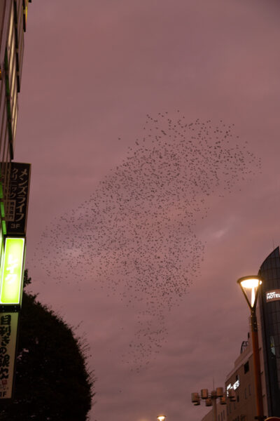 Zurück am Bahnhof beeindruckte uns ein grosser Starenschwarm, der sich vor dem Yodobashi-Gebäude versammelte und einen Heidenlärm veranstaltete. Ob sie sich wie in Europa versammeln, um ins Winterquartier zu ziehen?