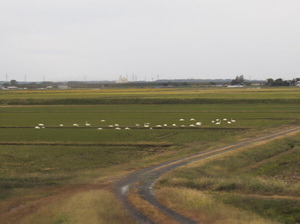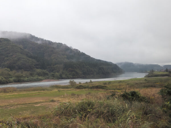 Zu unserer Tagesreise war der mal wieder regnerische Tag passend. Alles war ziemlich verhangen, hatte aber auch so seine Romantik. Nach der Shonai-Ebene mit den Reisfeldern und den futternden Schwänen ging es flussaufwärts entlang dem Mokamigawa, dem Fluss, der bei Sakata ins Meer mündet.