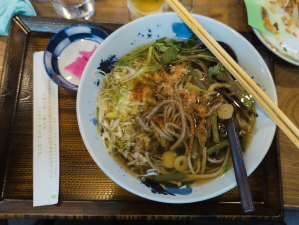 Mehr als zwei Tage kann man diese Üppigkeit aber nicht durchhalten. Also suchten wir die Schlichtheit für die übrigen Tage im nahegelegenen Soba-/Udon-Restaurant. Es verpflegte uns die restlichen beiden Abende ebenfalls gut und ausreichend. 😉