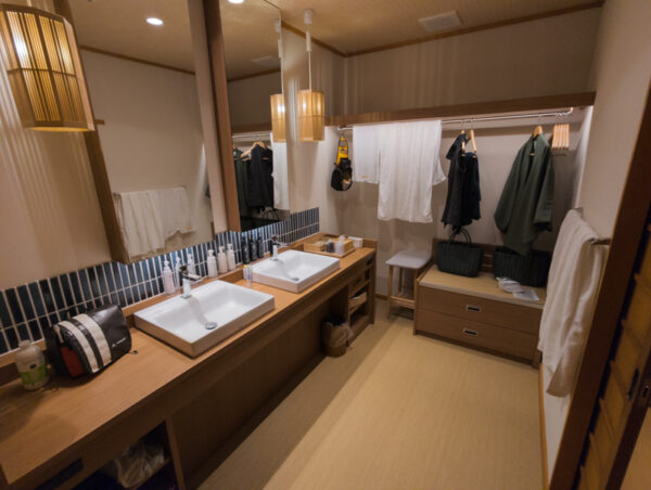 So viel Platz haben wir in Japan noch nie gehabt. Dazu kam der grosszügige Genkan (der Eingangsbereich) und der Nassbereich (nur Waschbecken). Insbesondere die separate Toilette, die uns beim Betreten immer freudig mit einem Piepton begrüsste und gleich bereitwillig ihren Deckel von selbst öffnete, haben wir richtig liebgewonnen während dieser drei Tage.